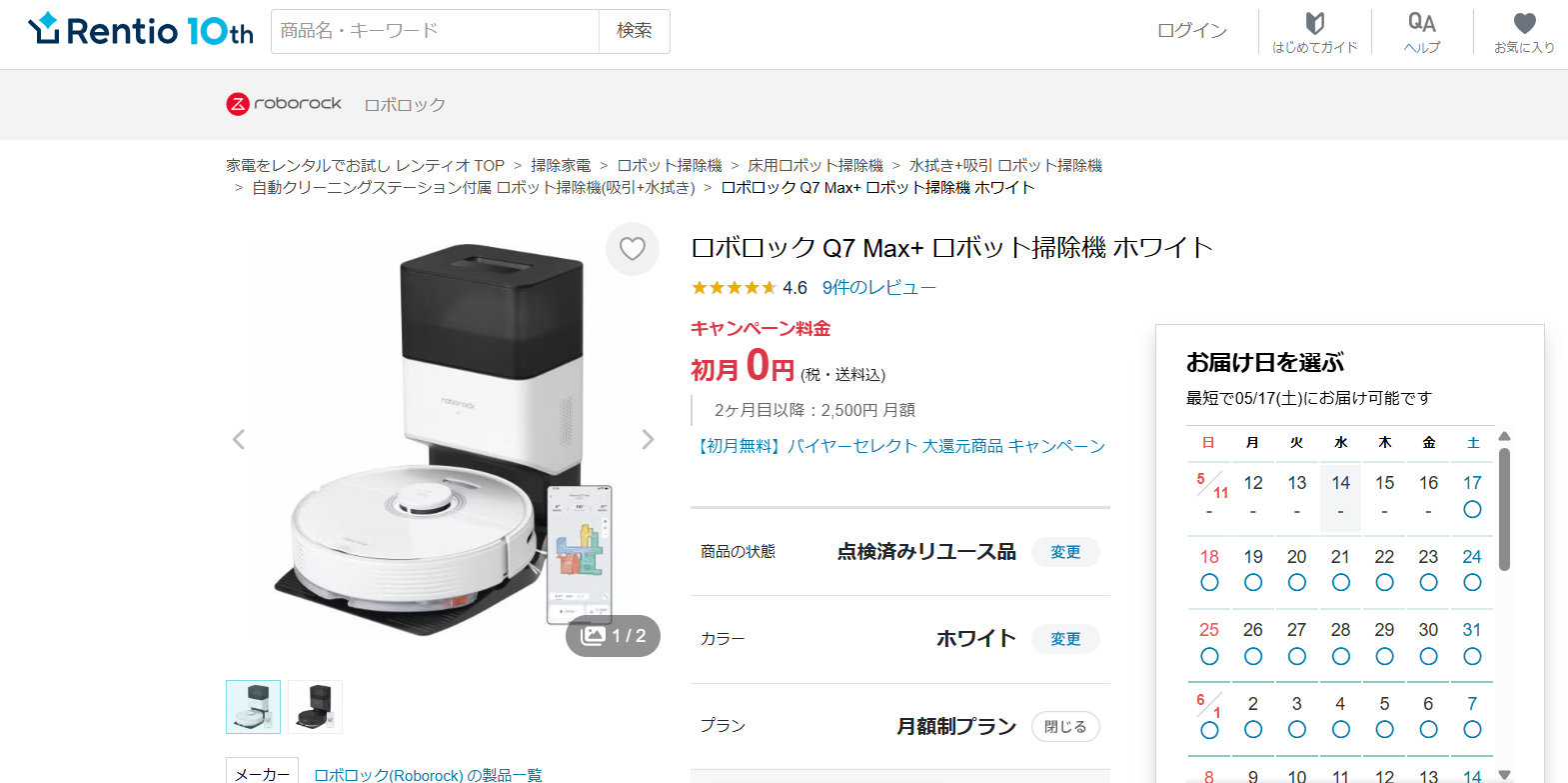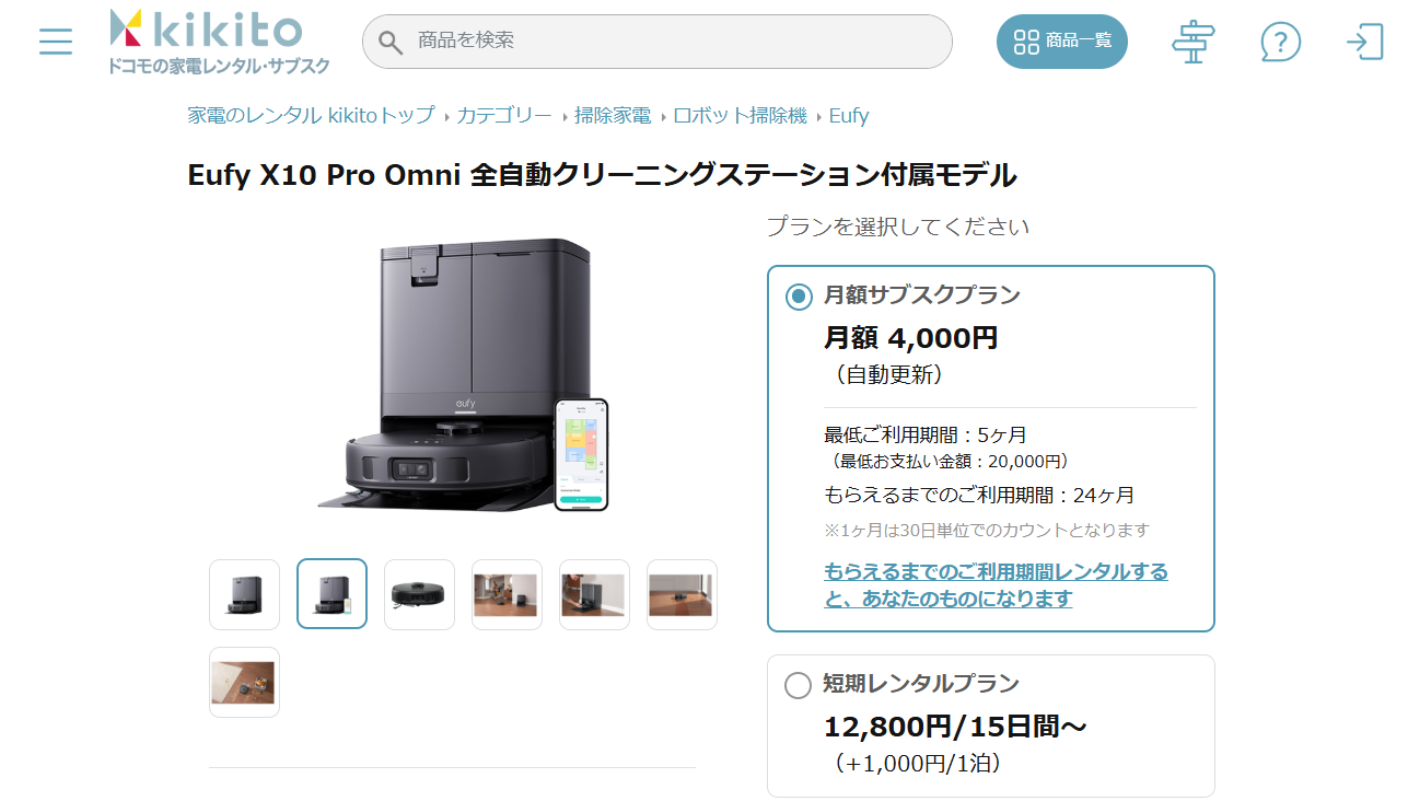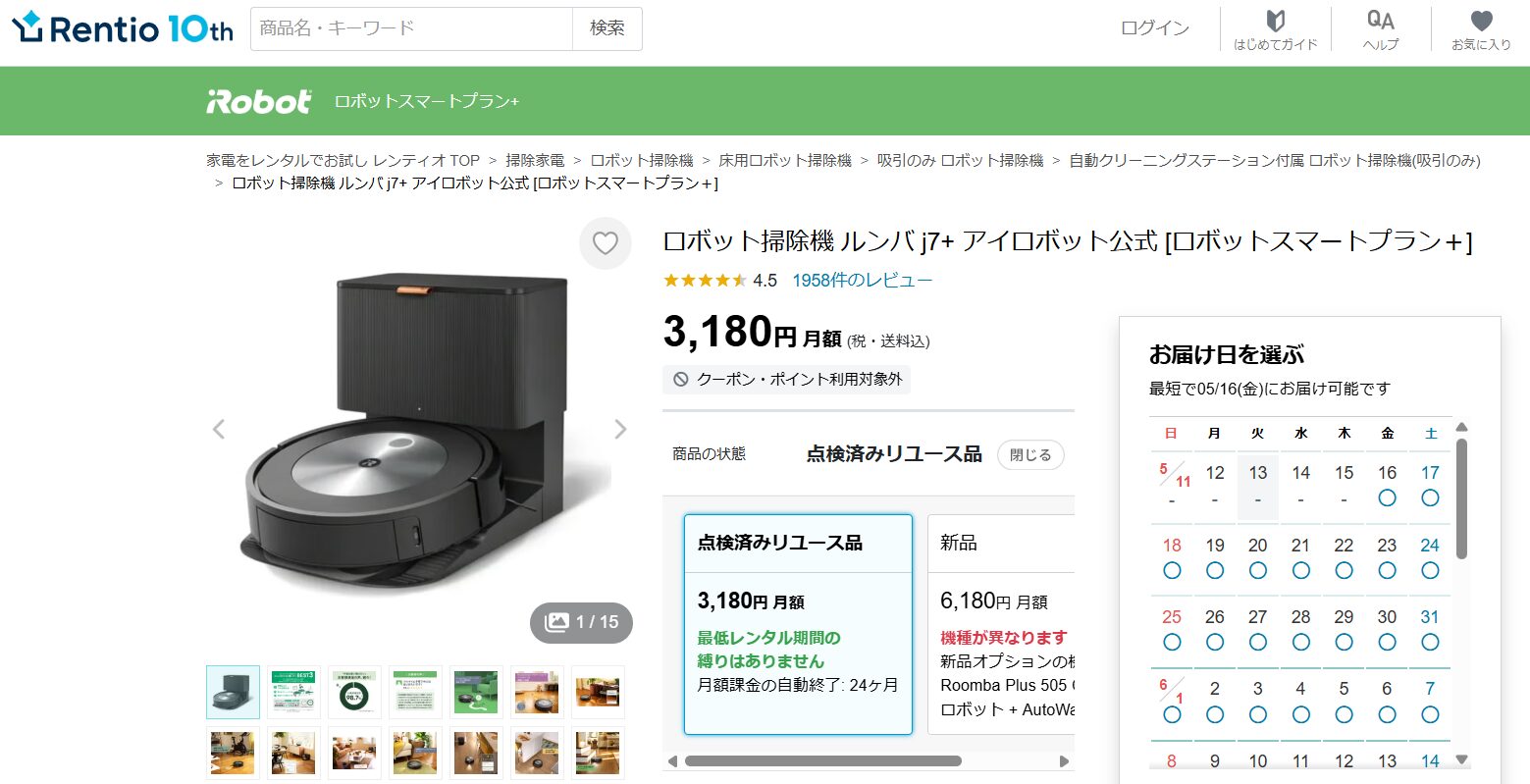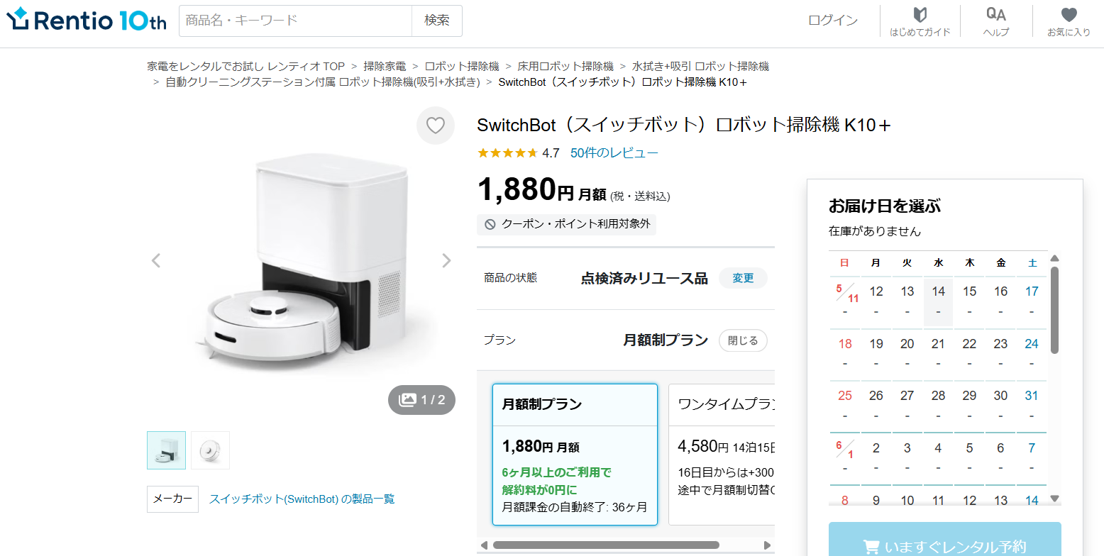 → 月1,000円台〜レンタル可能であること。ロボット掃除機は大抵の場合、1台で数万円します。レンタルを利用する事で、初期費用を大幅に抑えることができます。